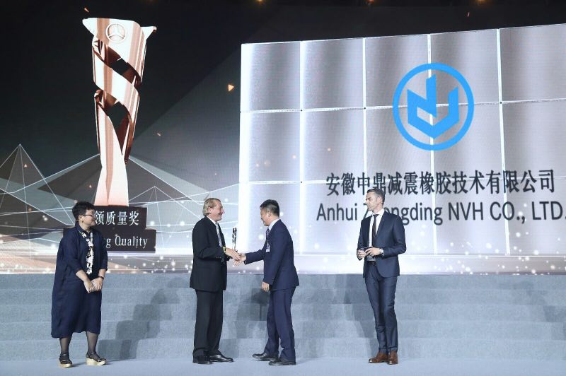 727,以为主题的北京奔驰(英文简称“BBAC”)供应商大会在北京雁栖湖国际会展中心举行。北京奔驰遍布全球的500余家供应商参加了大会。作为北京奔驰优秀供应商,中鼎减震公司也在受邀之列,上市公司总经理夏迎松作为公司代表参加了大会,并接受了由北京奔驰分管质量的副总裁Heinz-Marx颁发的优秀供应商引领质量奖。据悉,此次获得引领质量奖的零部件供应商仅有中鼎一家。