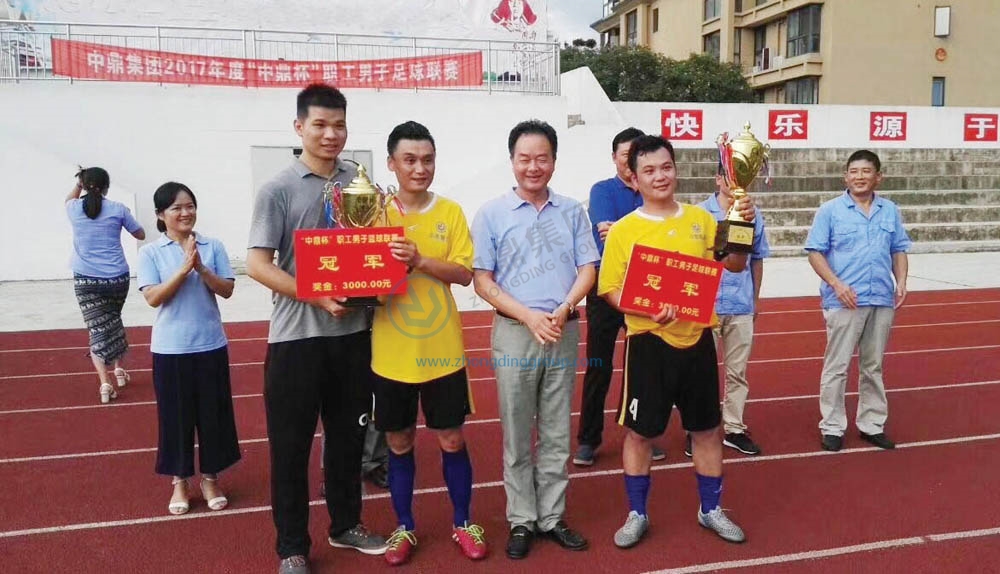 在8月17日的颁奖仪式之前,中鼎金亚及中鼎橡塑代表队还进行了足球联赛的冠亚军决赛,最终中鼎金亚代表队力拔头筹,赢得本   年度足球联赛冠军,中鼎橡塑及中鼎胶管代表队分获亚军及季军,集团后勤代表队荣获体育道德风尚奖、中鼎减震代表队荣获最佳组织奖,中鼎金亚的李峰及中鼎橡塑的史赢分获金球奖及金靴奖。至此,中鼎集团本年度职工男子篮球联赛及足球联赛圆满结束。