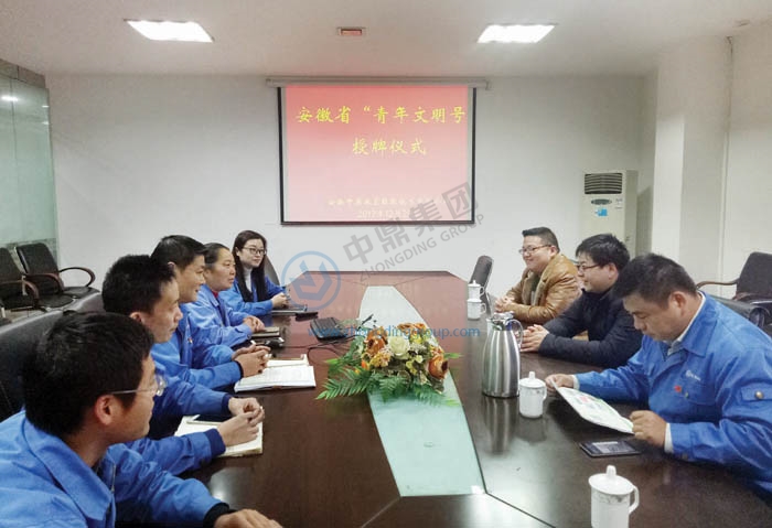 2017年12月29日上午,共青团宁国市委书记黄竞和宣城青年联合会副主席桂清泉一行来到中鼎减震公司为液封班组“安徽省青年文明号”授牌,并现场指导非公企业基层团建工作。