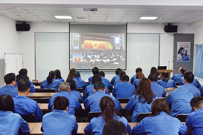 集团党委组织党员干部观看两会直播 3月5日上午,第十三届全国人民代表大会第二次会议在北京人民大会堂开幕。集团党委组织近60名党员干部集中收看了开幕式实况直播,认真聆听了李克强总理所作的《政府工作报告》。 在开幕式结束后大家进行了讨论,纷纷表示要认真学习和贯彻两会精神,充分发挥党员的先锋模范作用,立足本职,奋发有为,为公司的改革发展贡献智慧与力量。