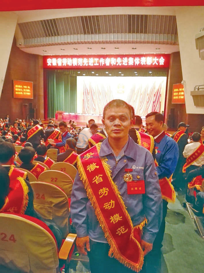 日前,中鼎模具公司设备维修工李家福被安徽省委、省政府授予“安徽省劳动模范”荣誉称号,并应邀出席省劳模表彰大会接受颁奖。