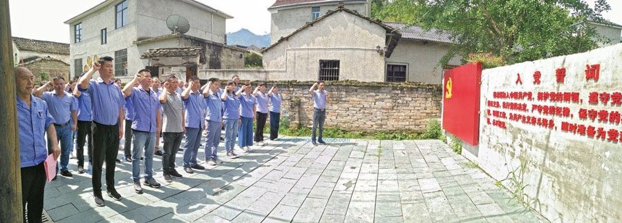 七一前夕,集团党委庆祝建党99周年暨入党宣誓大会在宁国第一个党组织诞生地——仙霞镇盘樟村隆重召开。集团党委副书记蒋广运,集团党委委员,各支部书记及预备党员近40人参加了会议。
