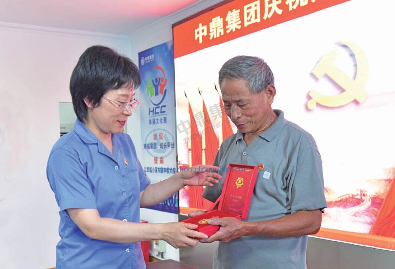 会上,集团党委副书记梁艳为50年党龄的老党员陈关有颁发“光荣在党50年”纪念章,并送上慰问金2000元。