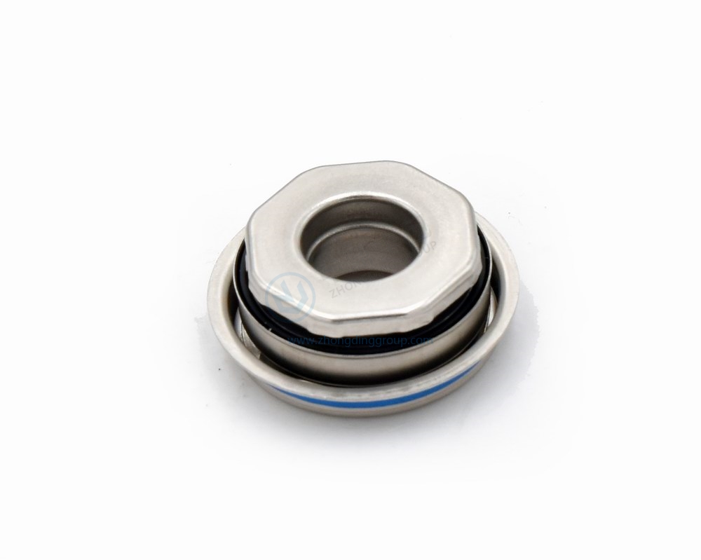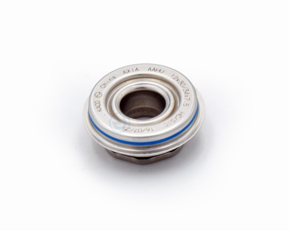 汽车发动机冷却水泵用机械密封,简称水封,主要由两部分组成:动环部件和静环部件。静环部件安装在泵壳上,在实际使用过程中处理静止状态;动环部件安装在轴承上,在实际使用过程中随轴承一起运转。其动密封介质为一对摩擦环(动环、静环),并通过底部的弹簧对密封端面预紧和提供轴向压力进行补偿。
